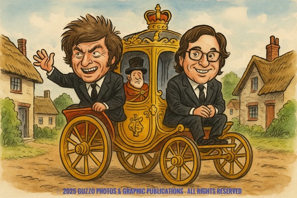 La visita anunciada al Reino Unido —la primera de un presidente argentino desde 1998— suma morbo: Starmer en agenda, Farage en el radar. El Presidente pasea entre laboristas y brexiters con la misma soltura con la que mezcla Hayek y Thatcher. Diplomacia de selfie, pero con dossier.