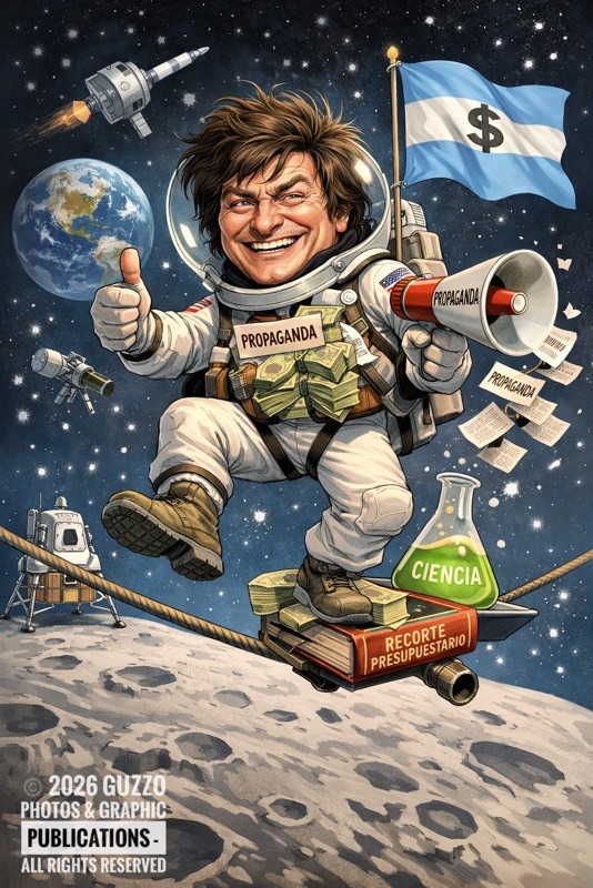 Así, la Luna funciona como escenario perfecto: lejana, silenciosa y fotogénica. Un lugar donde no se escuchan reclamos, ni paros, ni estadísticas incómodas.