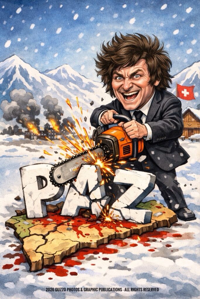 Entre cumbres alpinas, CEOs bien peinados y fotos de ocasión, la motosierra libertaria encontró un nuevo escenario: la paz mundial.